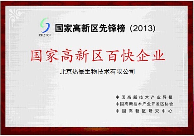 由中國高新技術(shù)產(chǎn)業(yè)導報社、中國高新技術(shù)產(chǎn)業(yè)開(kāi)發(fā)區協(xié)會(huì )和中國高新區研究中心共同主辦“國家高新區先鋒榜(2013)”推選結果公布。北京熱景生物技術(shù)有限公司年度經(jīng)營(yíng)規模和快速增長(cháng)方面取得的突出成績(jì),榮列“國家高新區先鋒榜(2013)百快企業(yè)”榜單。