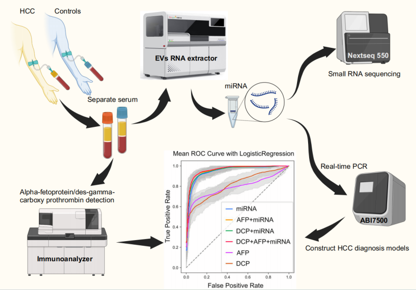 綜上所述,基于miRNA和AFP特征的HCC分類(lèi)模型實(shí)現了精準診斷,標志著(zhù)肝癌早期篩查領(lǐng)域的重大突破。肝癌外泌體miRNA產(chǎn)品以其高度準確性和非侵入性,為臨床診斷帶來(lái)了新的希望,助力全球肝癌患者獲得更精準的治療。這一研究成果不僅推動(dòng)了肝癌研究與臨床實(shí)踐的進(jìn)展,也為實(shí)現更有效的早期篩查和治療方案奠定了堅實(shí)基礎。