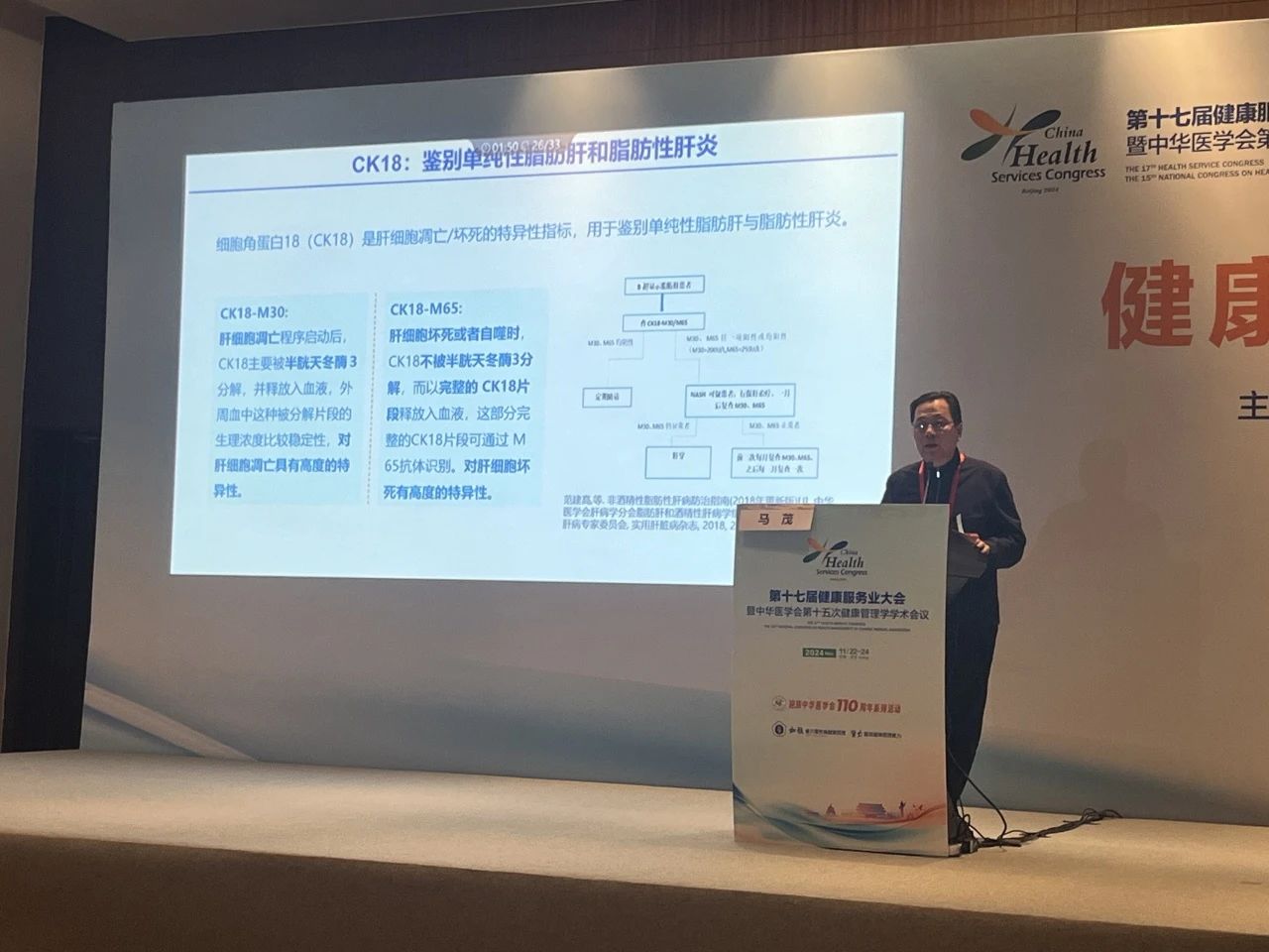北京航天總醫院體檢中心張晗教授在專(zhuān)題講座中指出,細胞角蛋白18(CK18)片段在代謝相關(guān)脂肪性肝病MAFLD的早期篩查、疾病進(jìn)展監測和治療效果評估中具有重要價(jià)值。全球約有16.6億MAFLD患者,中國城市人口中MAFLD患病率為28.77%。CK18-M30和M65片段與肝細胞凋亡和壞死相關(guān),其水平隨疾病嚴重程度升高。CK18在診斷MASH(代謝相關(guān)脂肪性肝炎)方面的性能優(yōu)于傳統肝酶指標,是目前最認可的MASH輔助診斷指標。張晗教授強調,多學(xué)科協(xié)作管理是MAFLD治療的關(guān)鍵,通過(guò)綜合管理和個(gè)性化治療,可以有效改善患者的預后。